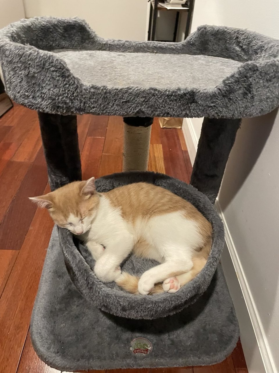 Thanks for reading to the end! Here’s another picture of our new kitten. He saved the other bed for his big brother, who he misses.