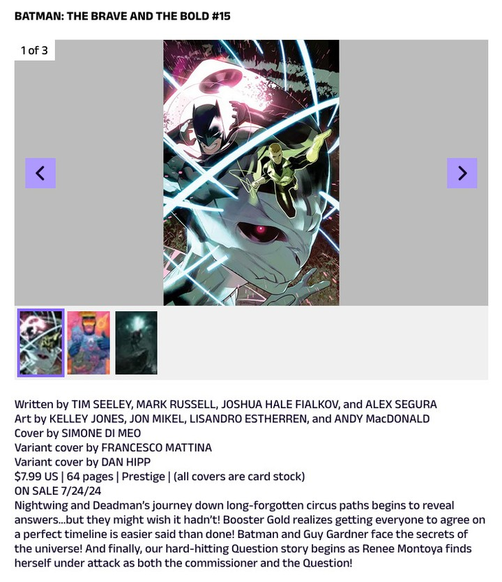 In other comics news, I’m writing a Renee Montoya/Question three-parter starting in Batman: The Brave & The Bold #15, drawn by Andy MacDonald! I’ve known Andy forever - great guy, super talented. I can’t believe it’s taken this long for us to collaborate. I love The Question and I’m excited for fans to read this dark, noir story - which picks up some threads from my last Renee tale in Lazarus Planet: Legends Reborn - and hopefully introduces a major new threat to the Question’s life! Dennis O’Neil and Denys Cowan’s The Question run looms large as an influence, not to mention the seminal work Greg Rucka did with the character in 52 and beyond, so I’m honored and thrilled to get to continue to tell my own Renee story. Hope you enjoy! First issue drops in July!