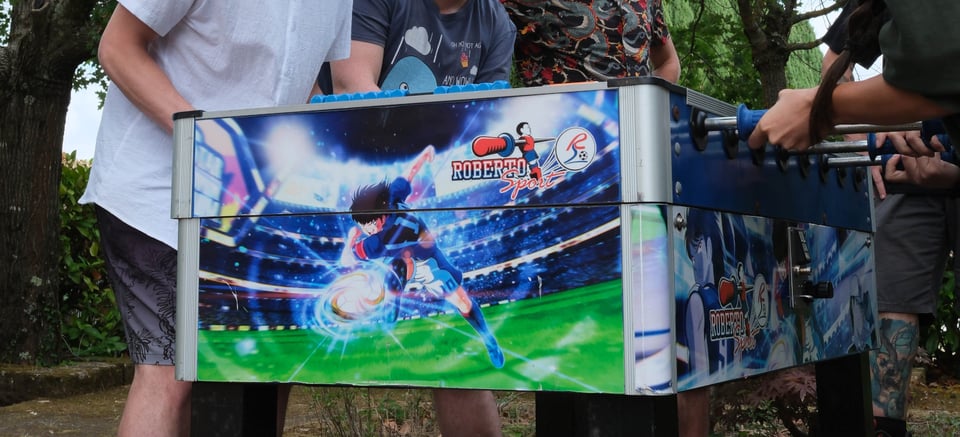 Quando non eravamo in piscina, la casa si trasformava in mezza sala giochi: il tavolo da biliardo e il calcio balilla hanno lavorato parecchio, sparsi lungo tutta la giornata.