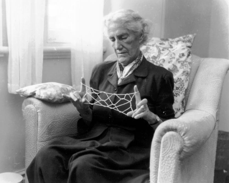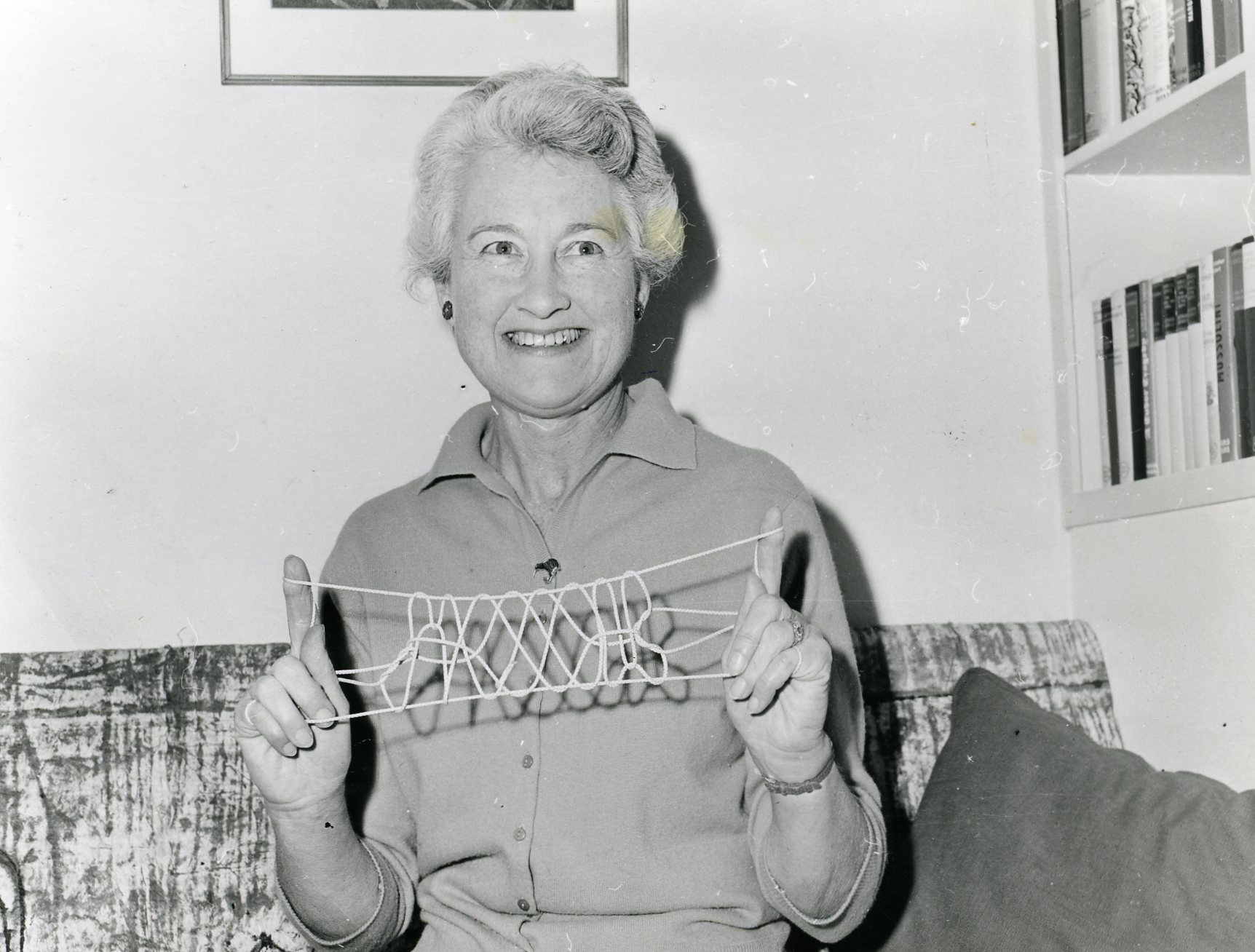 La autoridad real, la pionera, fue Caroline Furness Jayne, que vivió entre 1873 y 1909. Etnóloga americana, escribió una especie de best-seller sobre las figuras de cuerdas por todo el mundo (porque resulta que es algo tradicional en muchas latitudes, y en muchos lugares es un solitario: juegas tú sola e intentas hacer determinadas figuras). Bebía de estudios etnológicos que ya estaban hechos y de la información recabada por ella misma en sus viajes, y llenó su libro de dibujos y explicaciones paso a paso de cómo hacer cada figura. Figuras muy complejas que los «salvajes» de distintas tierras lograban sin pestañear.