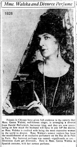 El matrimonio con McCormick duró hasta 1931, cuando ella se negó a volver de París, donde había abierto una tienda de perfumes. Ya en 1928 había llamado a uno de sus perfumes Divorçons (‘divorciémonos'). McCormick pilló la indirecta y puso “abandono del hogar” en la razón por la que quería el divorcio.