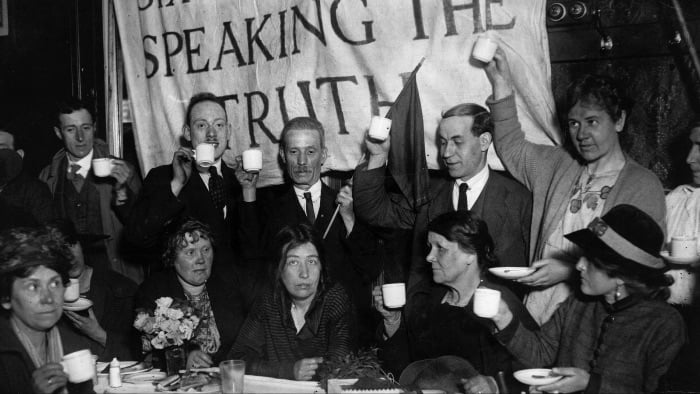 Brindando con té por la liberación de la sufragista Sylvia Pankhurst.