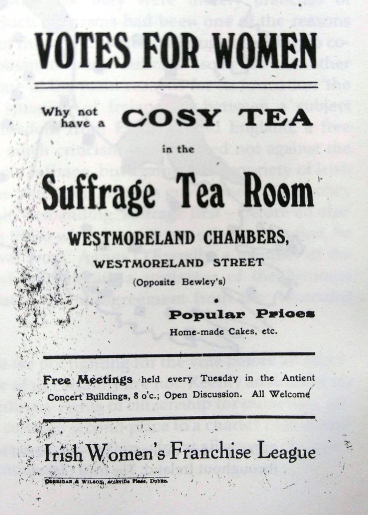 Los salones de té funcionaban no solo como centro de reunión para sufragistas, sino también como un lugar perfecto en el que sumar nuevas adeptas a la causa: eran espacios en los que muchas veces solo había mujeres y en los que en más de una ocasión alguna líder sufragista aprovechó para dar un discurso.