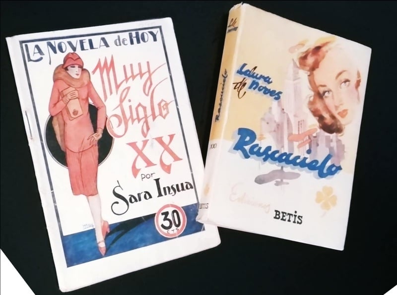 Raquel: «Dos novelas rosas/sentimentales, una de los años veinte y otra de los cuarenta. Laura de Noves, por cierto, es Carlota O'Neill, que era republicana y estuvo en la cárcel. Como no podía trabajar de periodista por roja malvada, escribía novelas rosas y crónicas de sociedad con seudónimo».
