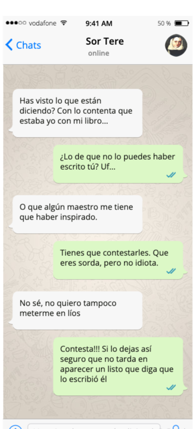 Me imagino una conversación de WhatsApp entre Teresa de Cartagena y Juana de Mendoza que iría más o menos así: