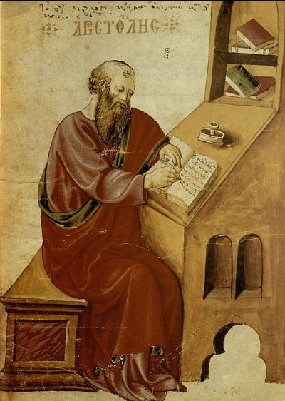 Aristóteles escribiendo que las mujeres son inferiores.