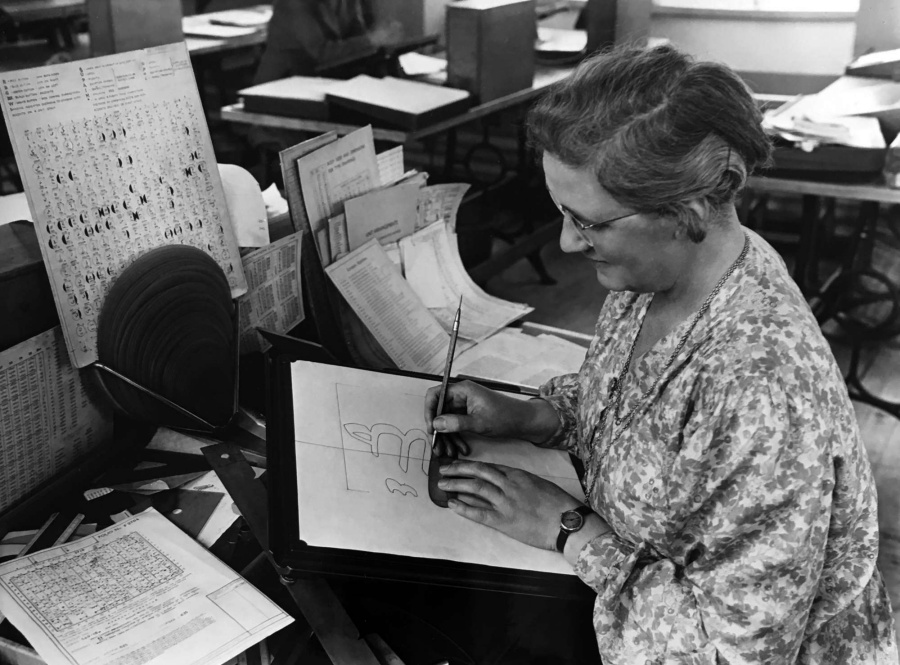 Es decir, detrás de esos grandes nombres que pasaron a la historia como los creadores de una tipografía había un equipo enorme de personas que cogían los bocetos iniciales y los desarrollaban y expandían a todas las letras y números y símbolos y variedades tipo cursiva o negrita. Y esas salas estaban llenas de mujeres. De hecho, las primeras contratadas por Monotype cuando abrió su primera Type Drawing Office (TDO) en Sussex en 1910 fueron cuatro mujeres.