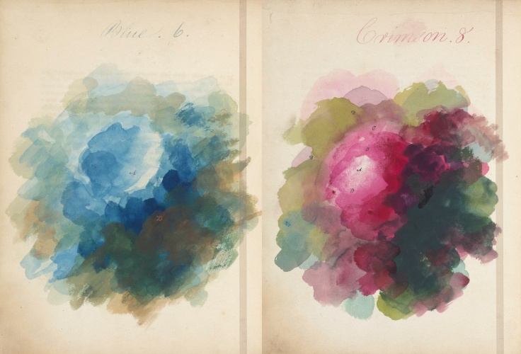 Empecé por Emily Noyes Vanderpoel porque es la más conocida y de quien más se sabe, pero no fue la primera. No sabemos quién fue la primera, claro, pero si imaginamos que solo existe lo que se conoce, podemos darle ese puesto a Mary Gartside, una inglesa nacida en 1755 en Manchester que también se dedicó a la acuarela. Se sabe poquísimo de ella: pintaba flores, era profesora de arte y publicó tres libros sobre el color (el primero camuflado como un manual de acuarela, pero se metía ya a fondo a teorizar). Es muy interesante comparar su expresión del color con la de Emily Noyes Vanderboet: donde una hacía cuadrículas perfectas, la otra ilustraba sus teorías con nubes de colores. Murió en 1809.