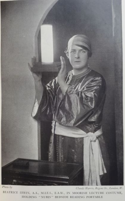 Beatrice Irwin pasó a la historia con su nombre artístico. Nacida en 1877 en Dagshai, en la India, se apellidaba Simpson, pero decidió usar Irwin para su vida artística. ¿Qué hacía? Era actriz y poeta (escribió una serie de poemas sobre el color que fueron algo ridiculizados por la crítica). También tenía una vida espiritual muy intensa: era seguidora del bahaísmo, según Wikipedia «una religión monoteísta cuyos fieles siguen las enseñanzas de Bahá'u'lláh, su profeta y fundador, a quien consideran la Manifestación de Dios (profeta) para la época actual».