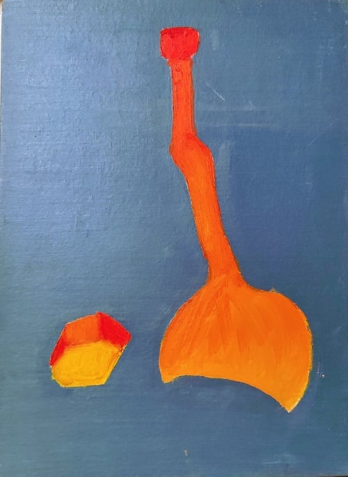 Aquí tenéis en exclusiva un Ana Bulnes original. Creo que es mi mejor cuadro y siempre consideré que era donde se veía de forma muy clara mi buen ojo para el color. (Y no, no está al revés, no es una copa, es una botella. Veintipico años llevo explicando esto, creo que por eso no soy pintora).