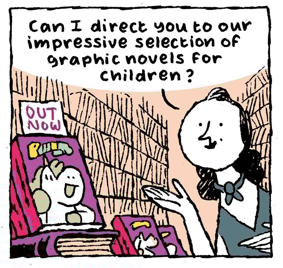 And I've drawn a fun little two-pager for my agent that will pop up at some point. I am shamelessly putting product placement of my own books in my own comics.