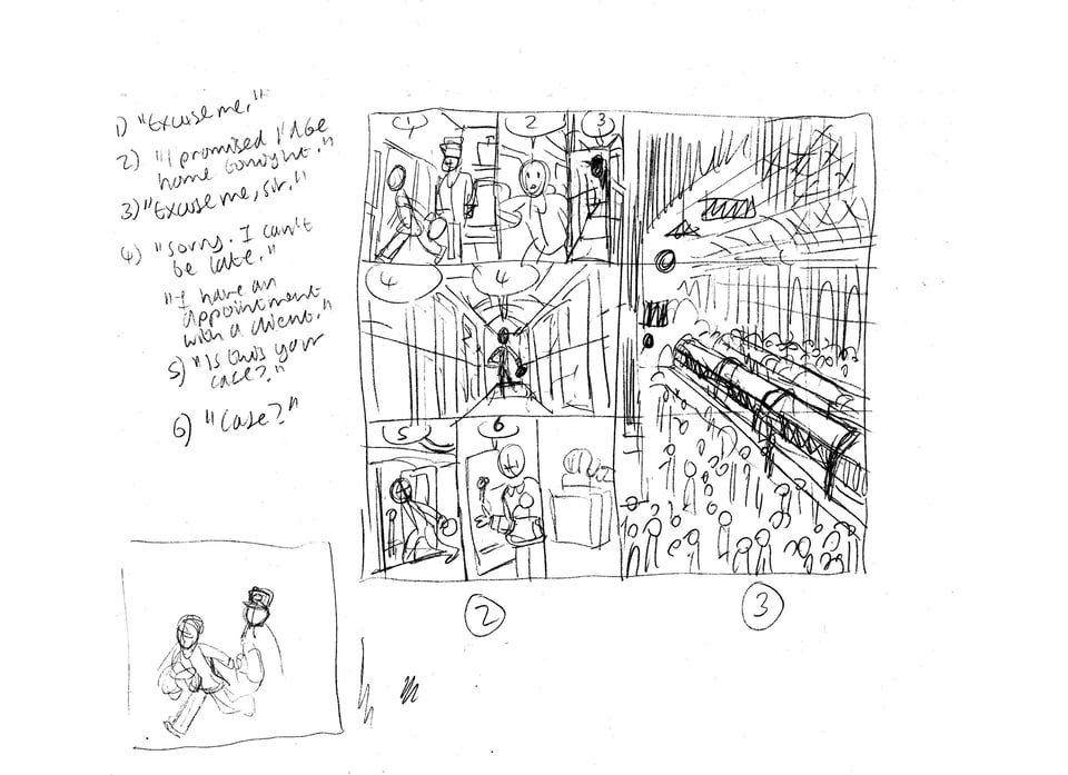 Thumbnails (pencil on A4 scrap paper).