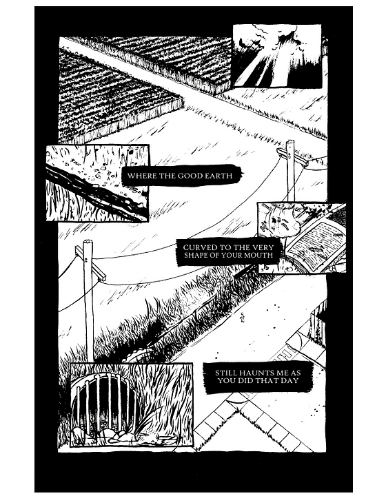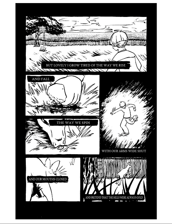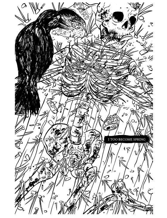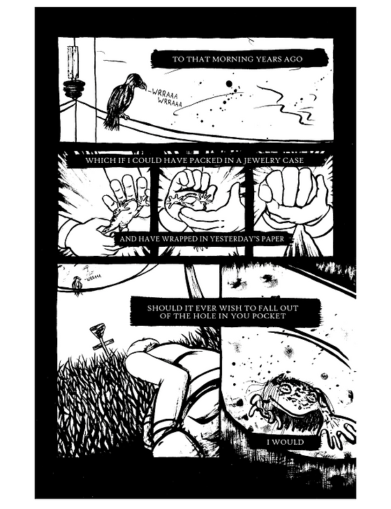 So fast forward five years. I was now deeply in love with comics and already sold my soul to the devil with the aim to become a professional comic writer. The standard (and good) advice you will hear for new comic writers is to start small. So I decided to adapt this poem into a short comic. But, of course, I couldn’t make it too easy on myself. I wanted to learn the medium and experiment with juxtaposition and the relationship between text and image when placed on top of each other.