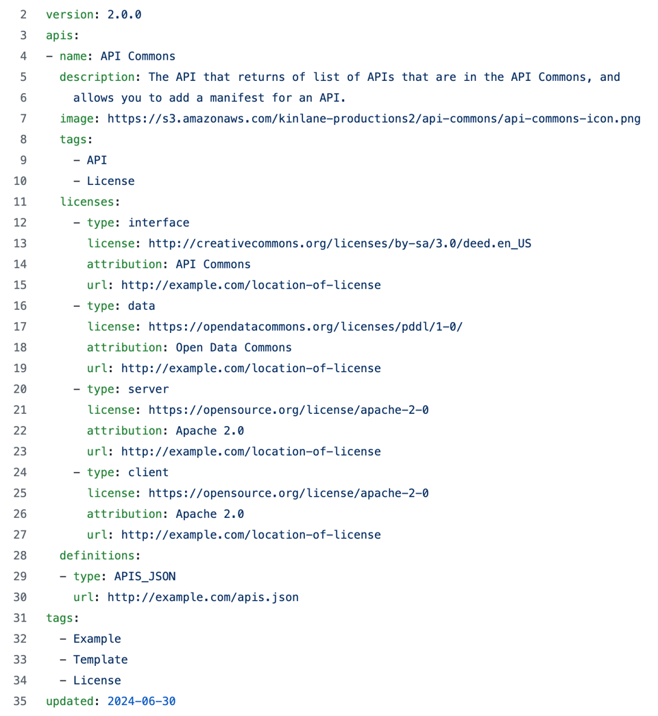 The API Commons interface license provides a legal position of the naming, ordering, and overall design of your API, not just the code or other parts. An interface license will help define the legal tone you take with how your API paths are able to be put to work within other applications and integrations when published as part of your APIs.json contract. You can find JSON and YAMl examples of the interface license on the API Commons, and you can fork the GitHub repository to apply as part of your API operations.