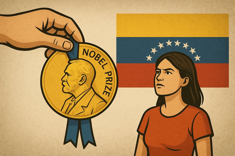 Enquanto Washington e Pequim trocavam farpas comerciais, um outro evento, mais simbólico, mas igualmente poderoso, chama atenção: o Prêmio Nobel da Paz concedido à opositora de Nicolás Maduro na Venezuela, Maria Corina.