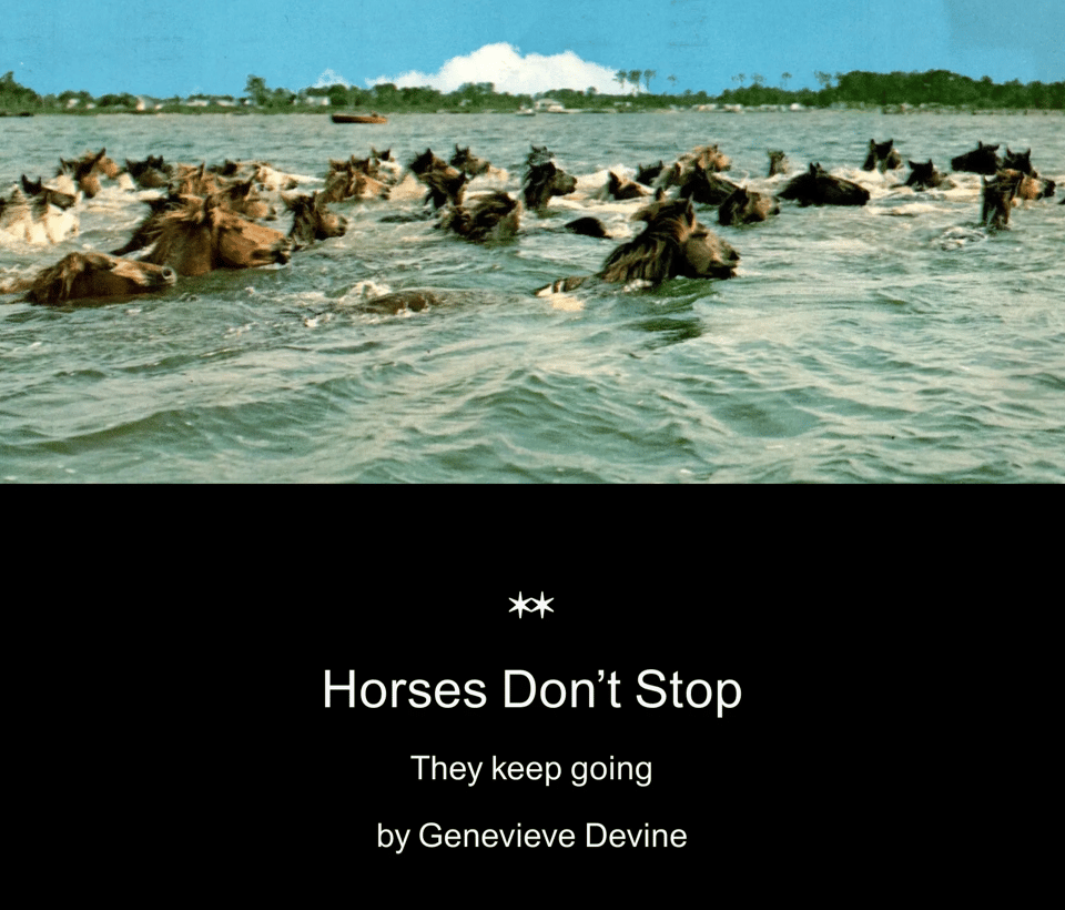 The latest on Are.na Editorial is an essay by Genevieve Divine on the swimming ponies of Chincoteague and the mythos that surrounds them. Genevieve went to the 100th Anniversary of the Chincoteague Pony Swim to report back for the Annual.