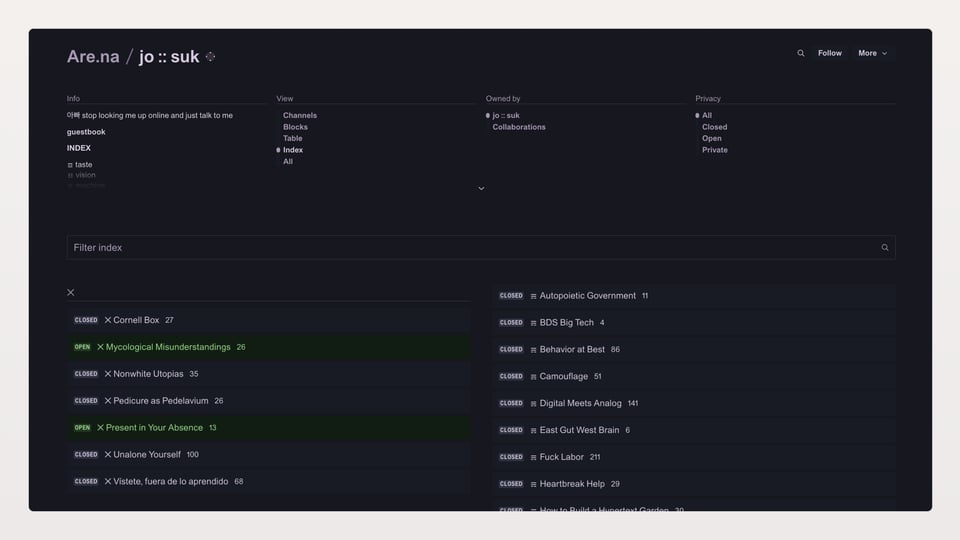 You might also pick up a book at one of the book launch events happening this month in Los Angeles, Rotterdam, and Richmond, Virginia. As usual, we are feeling very grateful to the people in the Are.na community willing to organize, host, and gather.