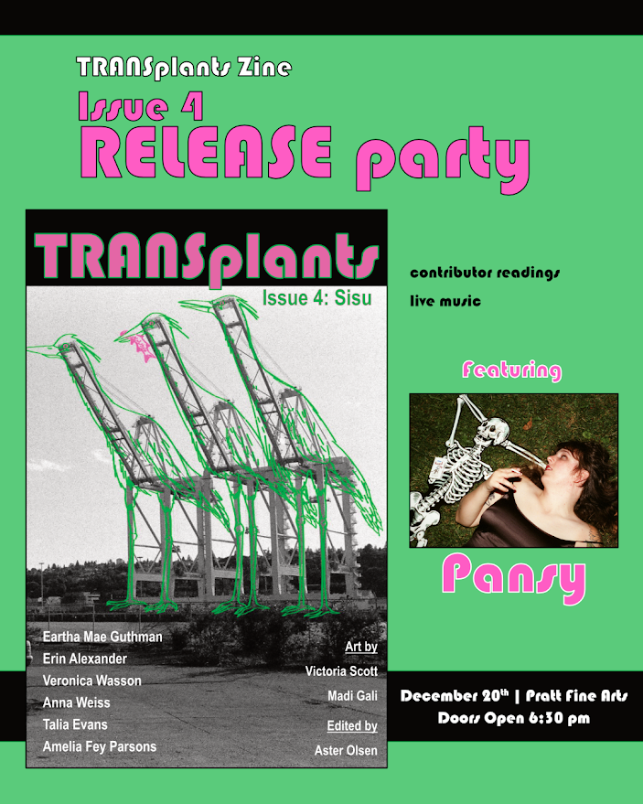 Hope to see you at the release party later today! There will be readings followed by live music by Pansy. Come party!