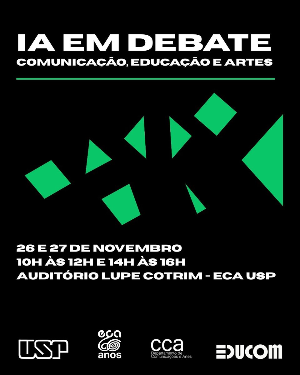 Como lidar de forma crítica com a inteligência artificial generativa em sala de aula e em processos de pesquisa e criação? Esta é a questão central do seminário "IA em Debate: Comunicação, Educação e Artes", que o Departamento de Comunicação e Artes da Escola de Comunicações e Artes da USP promove nos dias 26 e 27/11. Inscrições e a programação completa aqui, com transmissão online.