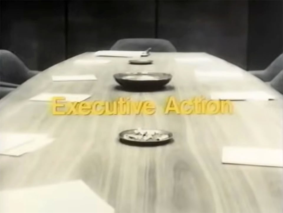 It's based on a novel, also from 1973, by Donald Freed and Mark Lane – yes, "that one" – who also get story credits on the film, but the version of Executive Action audiences saw is from a Dalton Trumbo screenplay. Trumbo, it seems, felt less strongly about centering the story on the complicity of the CIA than Freed and Lane did, but complying in advance didn't protect the project from security concerns during shooting…