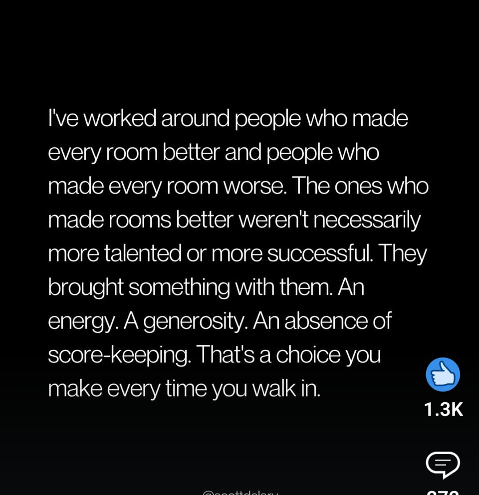 Let's begin with the fact that I actually agree with this. You enter a room on your own two feet and you get to decide what energy comes with you. But this is when of those moments where you get to come along on a Betts Brain Byway. See, I didn't just read this and nod and scroll by. Nope. My brain lit up like someone plugged in the entire Christmas light tangle.