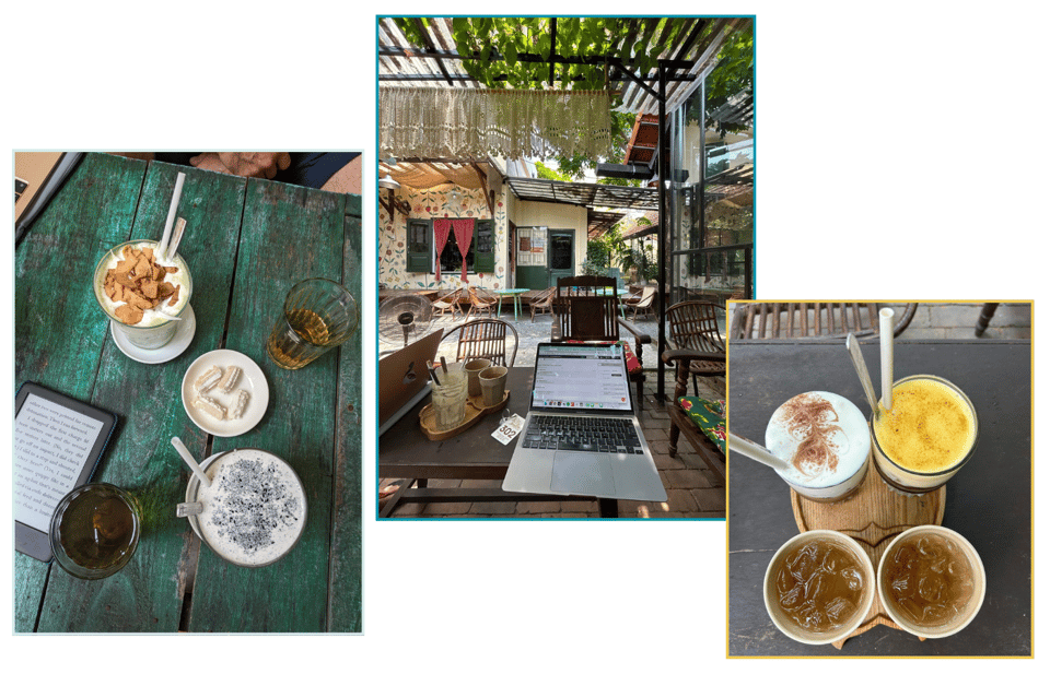 Our favorite coffee shop was a sprawling garden near our hotel, full of low chairs, creeping vines, and mismatched cushions. The menu had English and Vietnamese; a coconut cold foam matcha and an egg coffee rung up to a grand total of US$3.30. Most days, it was half empty, just us and a handful of Vietnamese students; one girl taking an online English class on her laptop, a few kids in school uniforms editing a video together. The internet was fast, and it felt familiar in some ways (if you set aside the fact that it was a hundred degrees, there was no air conditioning, and once I saw a rat chase a toad across the patio.) It isn’t a tourist trap, it’s just a random neighborhood coffee shop. Us and everyone else there came for the same thing: a good drink, a cute vibe, fast internet. In Vietnam, I reflected a lot on how this, too, is a local experience. In some ways I think it can be overly precious to demand that everything feel “rustic” to be authentic. Authenticity can look a lot of different ways in the global cities of the world.