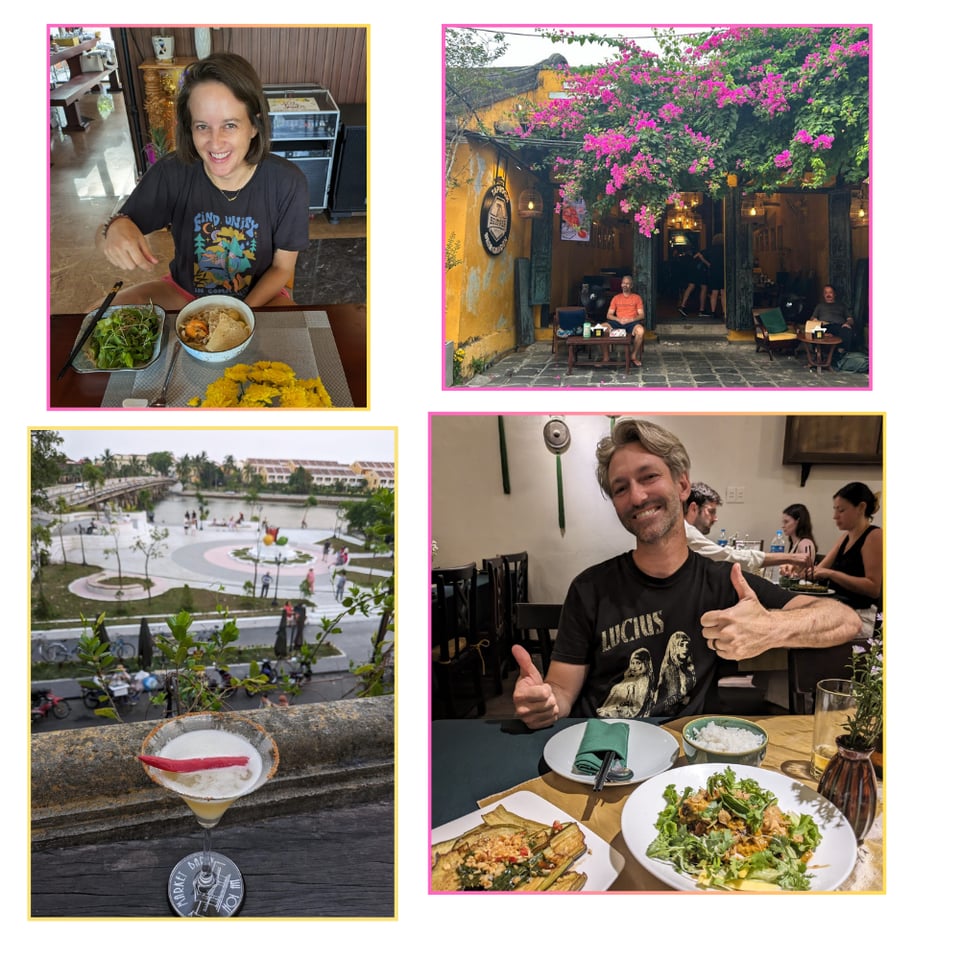 We also ate a lot of vegan food in Vietnam! Chickpea Restaurant was our favorite — a locally run vegan place, led by a Vietnamese woman about our age who did a silent meditation retreat during the pandemic and was overcome with the sense that opening a vegan restaurant was her calling. We’re so glad she did. We’re vegetarians when we’re not traveling, and it felt like a physical relief to eat delicious, authentic local food without meat. Chickpea tempeh banh mi, fresh spring rolls filled with beautiful veggies and shredded tofu, steam buns with tempeh and tofu and the world’s best peanut sauce... we loved this place so much.