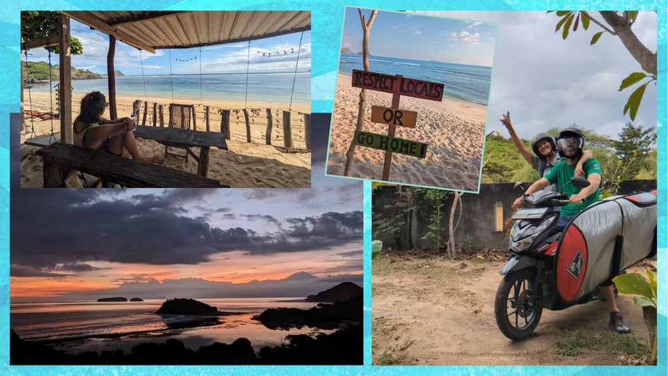 Meanwhile on Lombok, surf camp was indeed a surf boot camp, but fun! It was strange to be apart from Justin for a full week when we’ve been with each other 24 hours a day for... well, eight months now, but it was good for me to learn new skills on my own. I was in Kuta, Lombok, a formerly sleepy fishing village that is now a tremendously crowded surf town. The crowds mean will never surf there again, but the coaching really unlocked new stuff for me, and I came back to Sumbawa with a fresh optimism, a list of skills to work on, and two new recently-repaired dings in my board from dropping it on a rock-filled parking lot (nice.)