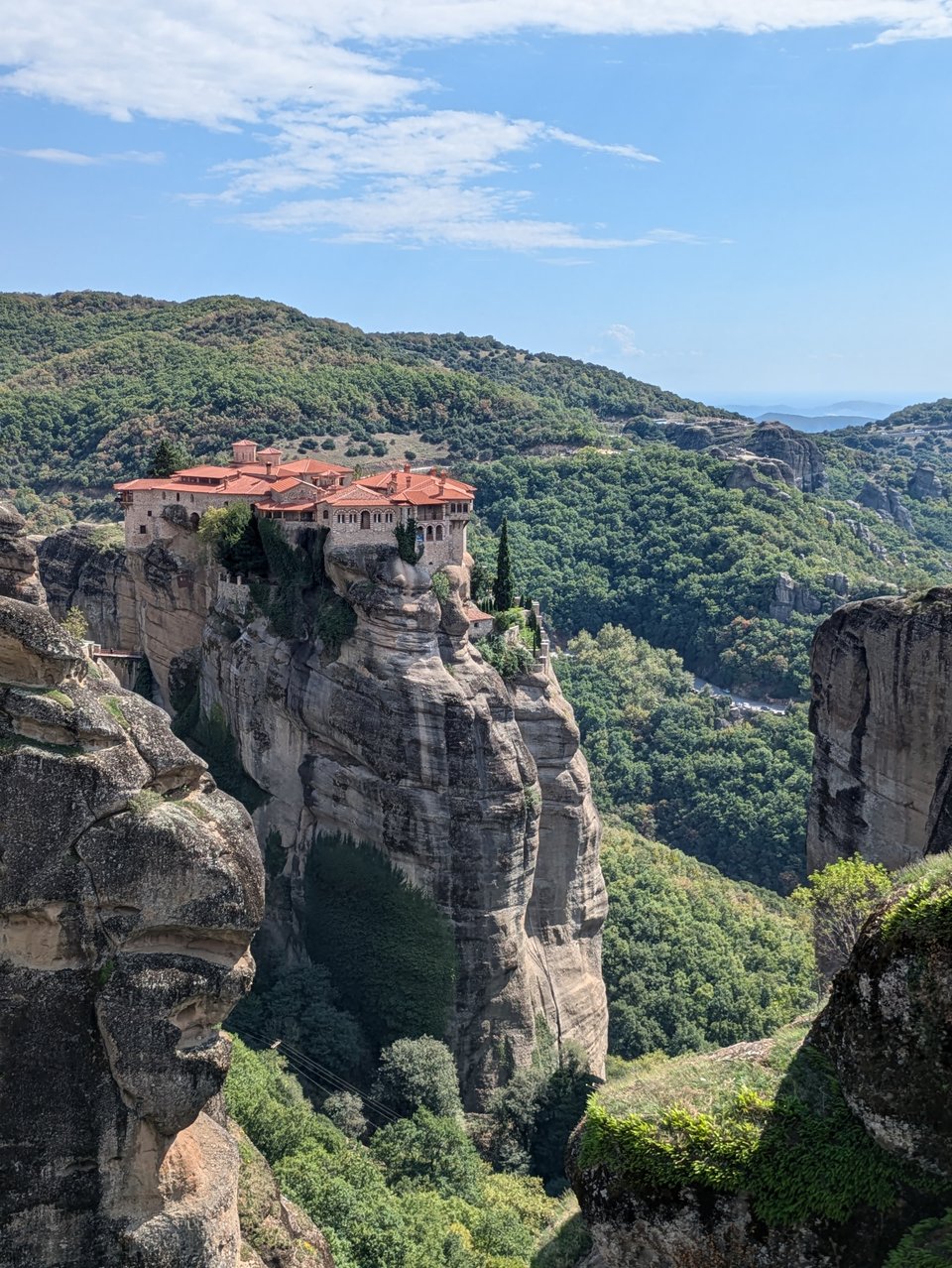 Our next stop was Meteora, a town we almost skipped since it’s a bit off our direct track north -- but gosh, we’re so glad we didn’t. We stayed at another adorable house in an olive grove (the proprietress explained to us, in broken but enthusiastic English, that we should come back to help with the olive harvest in a few weeks) and spent our days hiking amongst enormous rock domes and the truly outrageous monasteries that perch atop them. Meteora is a UNESCO World Heritage site, and rightfully so -- these monasteries, built in the 11th century, are mounted so precariously on top of cliffs so high that they truly seem impossible. The magic is in the mystery -- how the heck did they build these things? We spent two delightful days hiking around (and underneath) the monasteries, and also introduced Nancy to the magic of an afternoon Aperol Spritz.