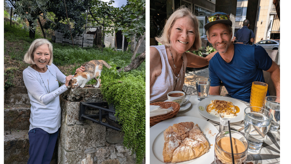 After Nancy headed home, Justin and I got on the train and went backwards -- to Litochoro, where we were hoping to actually see Lia this time around! Unfortunately, her husband Derek tested positive for COVID the same day we were meant to arrive. After talking over the options, we all agreed that Justin and I would come down anyway, book a separate place to stay, and plan to catch up with Lia outdoors -- luckily an easy undertaking given Greece’s terrace culture and the number of beautiful hikes in Litochoro! We took in the sights, ate a lovely meal next to the cobblestone riverbed that in the summer months flows from Mount Olympus, and were inspired to rewatch “My Big Fat Greek Wedding” after Lia told us how much Greek-Americans relate to it. It was only in the final five minutes that I realized this was, in fact, not the same movie as “Mamma Mia.” My loss.