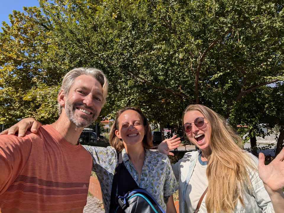 Lia and Justin are former co-workers, and she was the perfect friend to contact about this trip, because she’s now a local: she’s Greek-American, and relocated to the town of Litochoro (pronounced Lee-TOE-ho-row) just after the pandemic. Litochoro is where her grandparents are from, and she visited often as a kid; now, Lia and her husband Derek live in a lovely house with three lovely dogs, and Lia spends her time working on the nonprofit she founded, Ecogenia, which is kind of a Greek version of Americorps. (P.S. they need funding and have a US-based nonprofit arm for tax deductibility purposes, consider making a donation as a part of your year-end giving!!) Since Lia travels so much for work, she had some amazing recommendations for where we should go; she sent us a more-or-less complete road trip itinerary linking Athens and the northern city of Thessaloniki, and we just went for it!