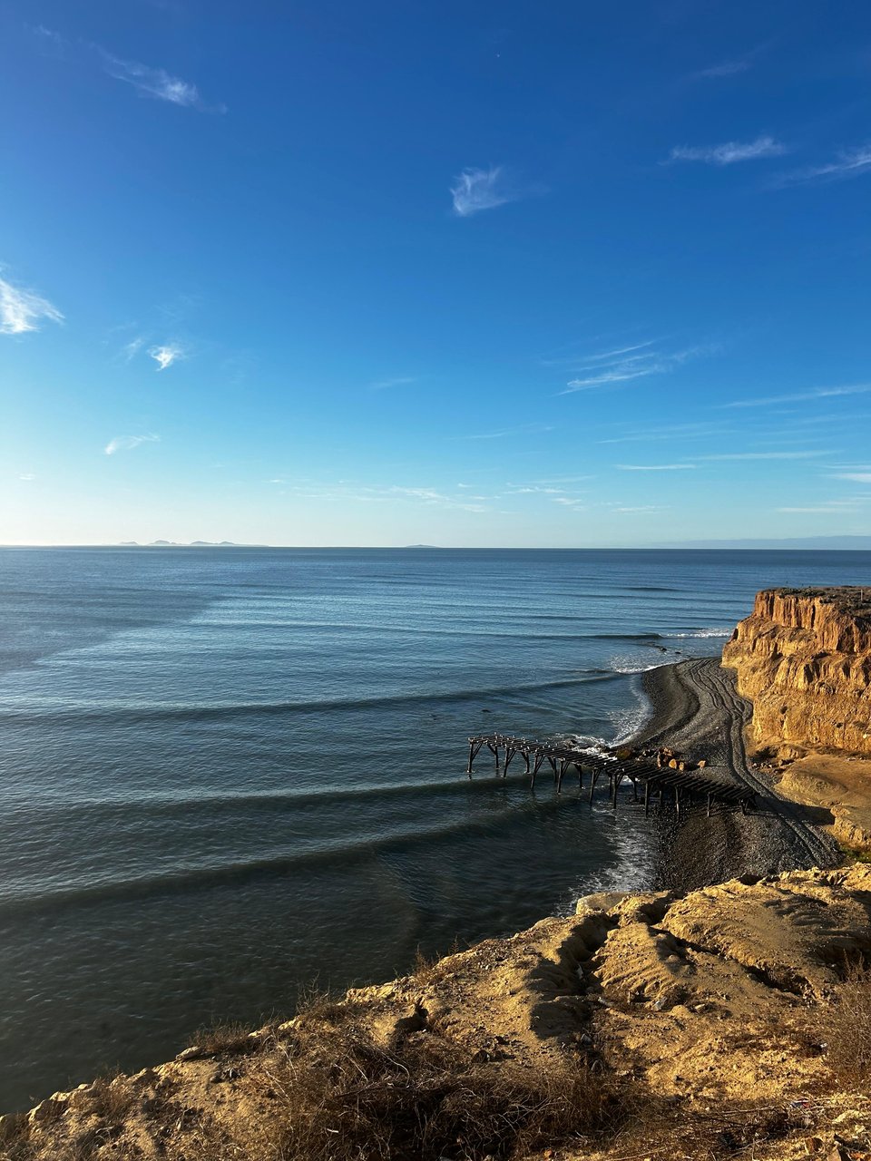 Unsurprisingly, the project was doomed from the start. The predicted uptick in affluent tourists who would buy a yacht in order to visit Mexico was wildly overestimated. That, combined with a change in the federal administration and a recession, ultimately caused the investors to back out and for the project to fail miserably. In the end, Santa Rosalillita was left with an abandoned marina that’s completely filled in with sand because there’s nobody around to dredge it. On the plus side, the residents have the best road in all of Baja connecting them to the highway. The other silver lining is that the jetty, which was installed as the perimeter of the marina, has modified the sand in such a way that there is now a really nice peeling wave that breaks off the end of it, and that wave now attracts a tiny bit of surf tourism. While we were there, the waves were only about a foot tall, but we still got out and caught a couple just to say we surfed it.
