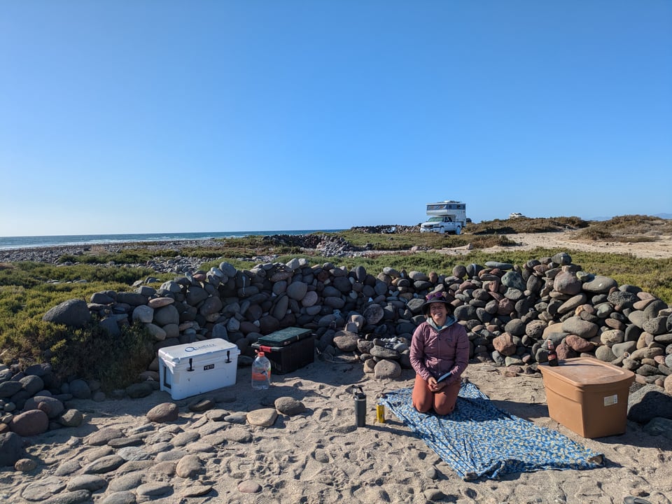 Last you heard, Dory and I were in Loreto, on the Sea of Cortez side of Baja Sur, so that I could prepare for a virtual job interview. The moment my interview was completed, we set out on the road again and headed north towards another remote surf spot called Punta Rosarito, better known to surfers as “The Wall.” As instructed by The Surfer’s Guide to Baja, we turned off the highway onto a faint dirt road at kilometer 23 and drove until we reached the coast. Similar to Punta Conejo, this beach was on the edge of nowhere, devoid of any homes or businesses, and covered in cobblestones.