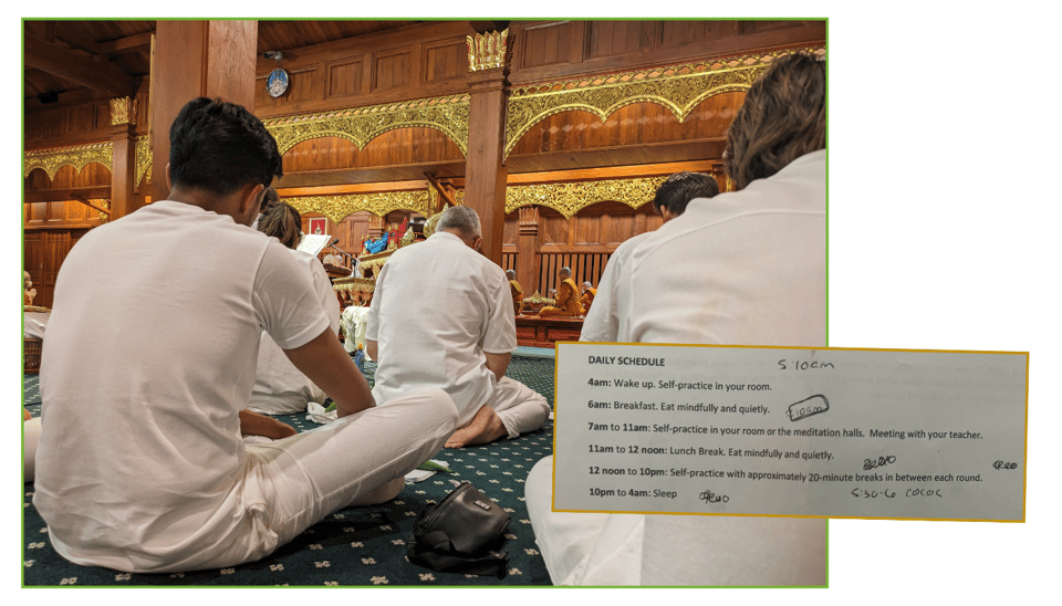 I’d describe myself as a novice meditator – I’ve got an app on my phone, I’ve dabbled intermittently, but I don’t really have a mindfulness practice of any substance. I never would have had the confidence or the boldness to commit to a silent meditation retreat without Justin, who’s done two retreats in the past, and who helped me understand that it was both possible and worth the challenge to commit to something so disciplined, so extended, and so full of unknowns.