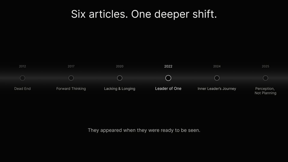 When I place these articles side by side now, I don't see a progression of better thinking. I see a series of moments where something became visible. Moments where what I was beginning to sense was met by something outside of me that allowed it to take form.