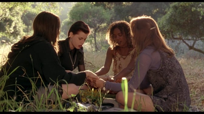 First, the characters. Your typical high school misfits, the “bitches of Eastwick” as a classmate calls them early on. However, it is pretty much immediately made clear that these are not typical girls, even for misfits. The protagonist, Sarah Bailey (Robin Tunney), has moved to Los Angeles following a suicide attempt that made her parents decide it was time for a change. Rochelle, played by Rachel True, seems to be the only Black student in the school, and is constantly bullied. Neve Campbell’s character, Bonnie, is covered in burn scars so bad she has to wear jackets all through the summer so that no one can see them, and undergoes constant treatment to have them removed. Nancy, played by Fairuza Balk, is stuck living in a run-down home that may or may not be a trailer, with her abusive father. And, of course, they’re witches.