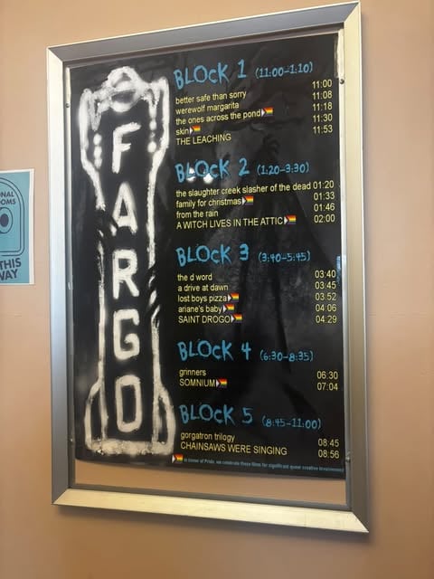 And now, for the second part of this post: the Darkest Day of Horror Film Festival! I had the absolute delight of attending the first annual DDHFF at the Fargo Theatre on the 21st, missing only five of the presented shorts and movies for eating lunch and being tired. The schedule for the day was as follows: