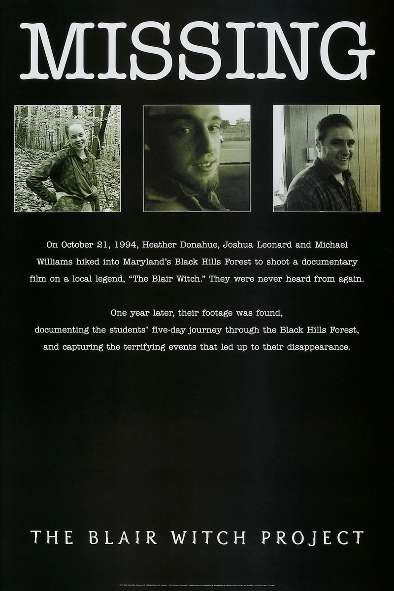 The Blair Witch Project caused a stir before it even came out. It marketed itself as something real, listing the actors as ‘deceased’ on IMDb, spreading missing posters throughout America, and creating a huge conspiracy around whether or not what you were about to witness in the theatre was real. And, from what I can tell, anyway, most people thought it was. On opening weekend, a majority of moviegoers thought they were really going to watch these kids go into the woods and die. That marketing campaign would change the way movies worked forever. It created the subgenre that we now know as ‘found footage’, which is based on the idea that what you are watching is a record that was recovered from the events you are watching unfold. This format had existed on the fringes of filmmaking before Blair Witch, but Blair Witch brought it to a different level entirely.