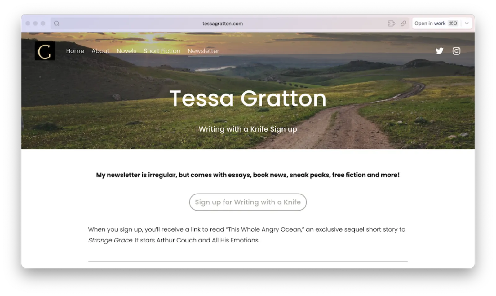 Going long is fine too. You might show off the artwork, write about the design process and inspirations, share a brief summary of the book, and describe what inspired it. But make sure to insert your pre-order link and launch date (not a countdown, since people open emails on their own schedules) directly below the cover. And while you’re at it, update your newsletter signup page and social profiles with info about the release.