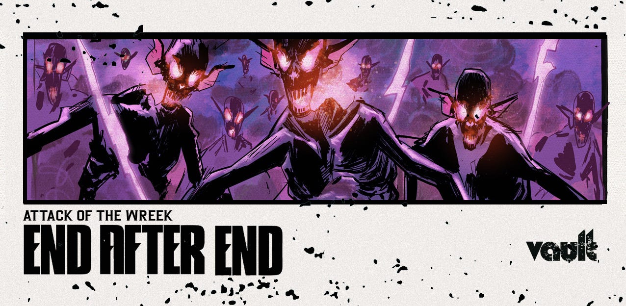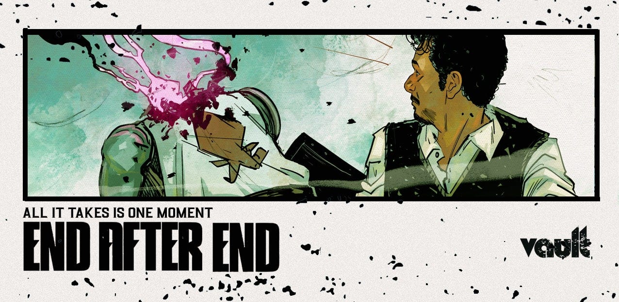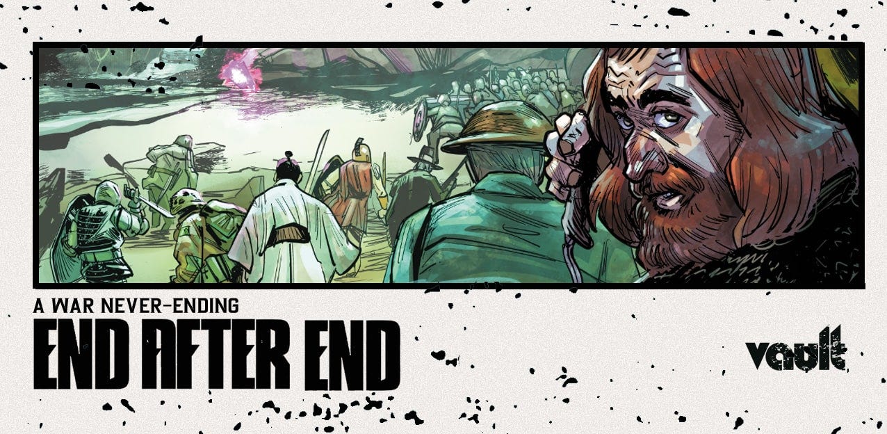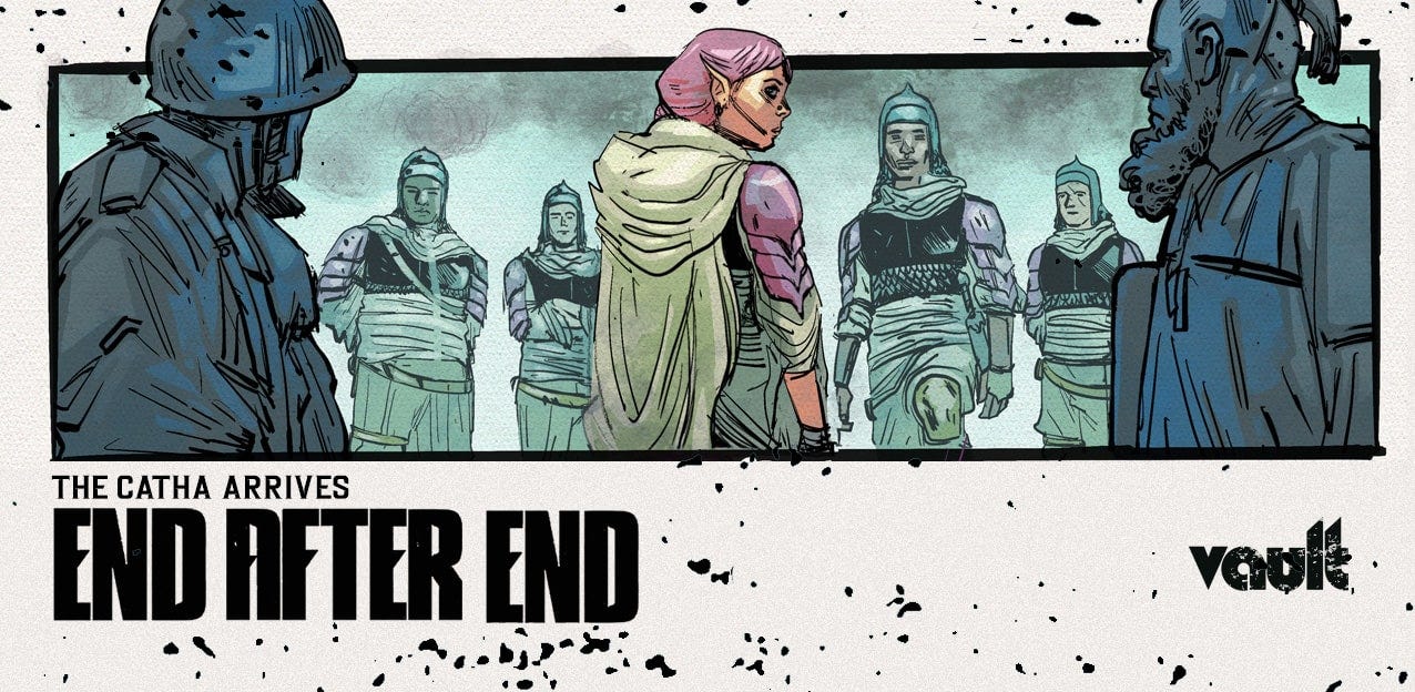 Welcome back, dear friends, to The Making of a Comic. This week, creators David “DB” Andry, Tim Daniel, and Sunando C. are joining me to discuss their upcoming fantasy series END AFTER END, published by Vault Comics. Tim even made a special header for this humble newsletter which I am honored to showcase and break my formatting for because look how awesome it is! Okay, back to the book at hand…