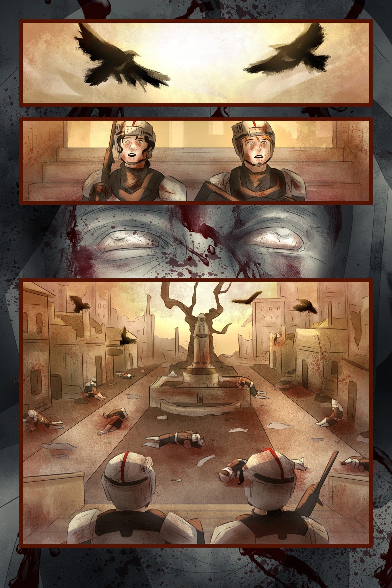 FH: So much of the Rao-verse was inspired by WW1, WW2, and parts of the French Revolution. From the Baron’s rise and his whole regime to the whole aesthetic of the battles and campgrounds. The Rao-verse was always a retro-future, kind of like the Fallout games, where we have a world with stunning technology but instead of being destroyed by a nuke it gets destroyed by the fact no one has learned from history’s worst mistakes. All the wars, all the revolutions, all the bloodshed.