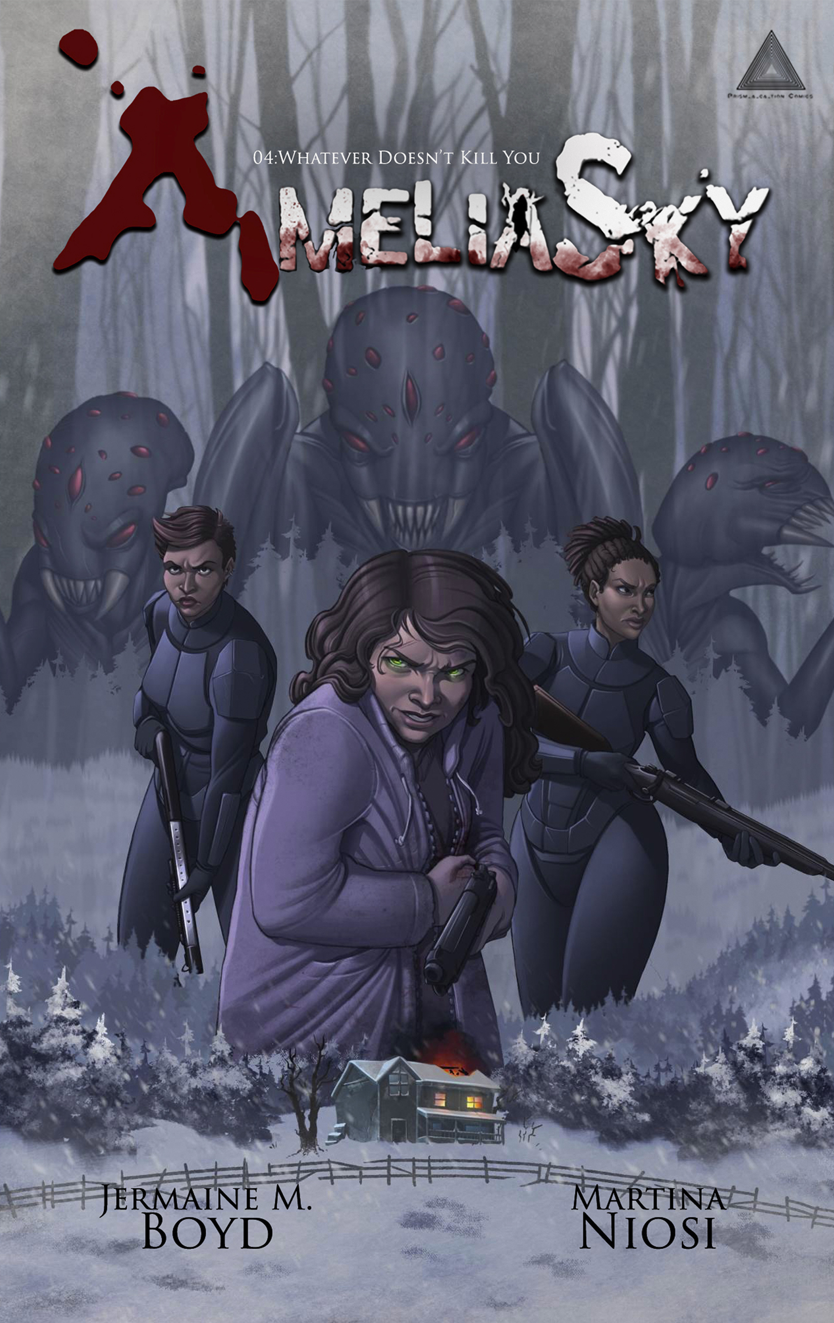 Amelia Sky #1-4 is headed to Kickstarter this spooky season! I’ve been editing this sci-fi horror series with the writer Jermaine M. Boyd for many years now, and what I love about it is that it’s a slow-burn mystery with a backdrop of sci-fi strangeness, apocalyptic alien horrors, secret conspiracies and government corruption. Amplifying the mystery are the haunting colors and crisp lines from Martina Niosi for issue #4 and Gwynn Tavares’ color-washed art in issues #1-3. Both artists create such a suspenseful and terrifying aesthetic that’s just positively oozing with danger and fear. Think of Amelia Sky as The Last of Us meets The Bourne Series.