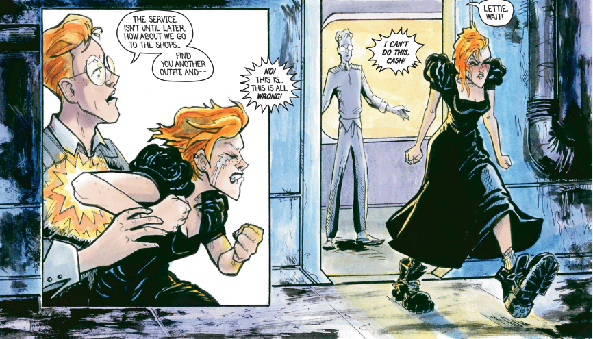 Sarah Cooke: I’m a writer (and of course huge fan!) of comics. Last year, I was thrilled to win the 2023 Mad Cave Talent Search in the writing category, and the 2023 Negative Space Women’s Comic Book Writing Competition. I’m the creator of the noir contemporary fantasy series No Spell Lasts Forever, with gorgeous art by Aimee Hawley and Eze Di Savino. And I’m the editor and creator of Faster Than Light, a sci-fi anthology about family and how families of origin and found families stay connected in a fast-paced, futuristic world. I’m producing it with Lesser Known Comics and it’s live on Kickstarter now. I have a story in it that you edited, Brittany, and I so enjoyed working with you!