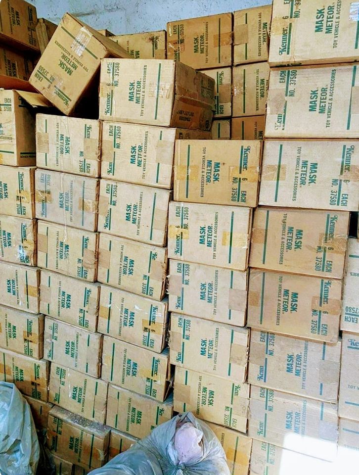 Amazing warehouse find of sealed cased #MASK toys in Antofagasta, Chile. From reports the majority of pieces have all already been sold at upwards of $100 US a piece. What I wouldn’t give to get a #Meteor from this lot. Follow the insanity on FB here;