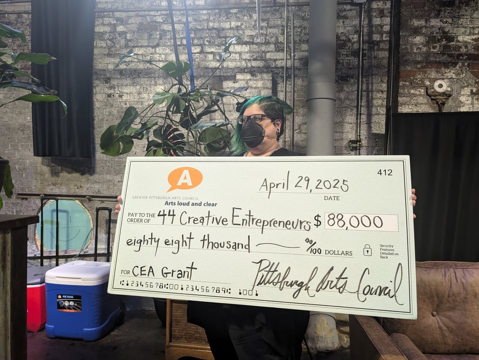 I was awarded a Creative Entrepreneur Accelerator grant from the Greater Pittsburgh Arts Council! This grant is helping me get equipment that will help me make better art, as well as launch a website. I’m in the middle of re-documenting my art, so the website isn’t live yet, but you’ll be the first to know when it launches. I plan to have a store along with my portfolio, information about my process, an archive of all my work, and more! Here’s a picture of me with the big check they made for all 44 recipients!