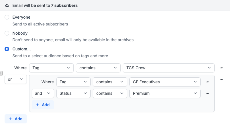 There’s so much useful info stored in your subscriber lists. Tags to remind you of a subscriber’s attributes, whether or not they’re a paid subscriber, and how much they pay each month. And now, with the Custom option under the Audience selector, you can combine as much of that data as you want to write for highly targeted groups.