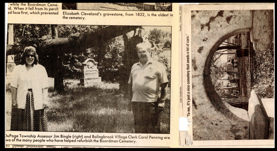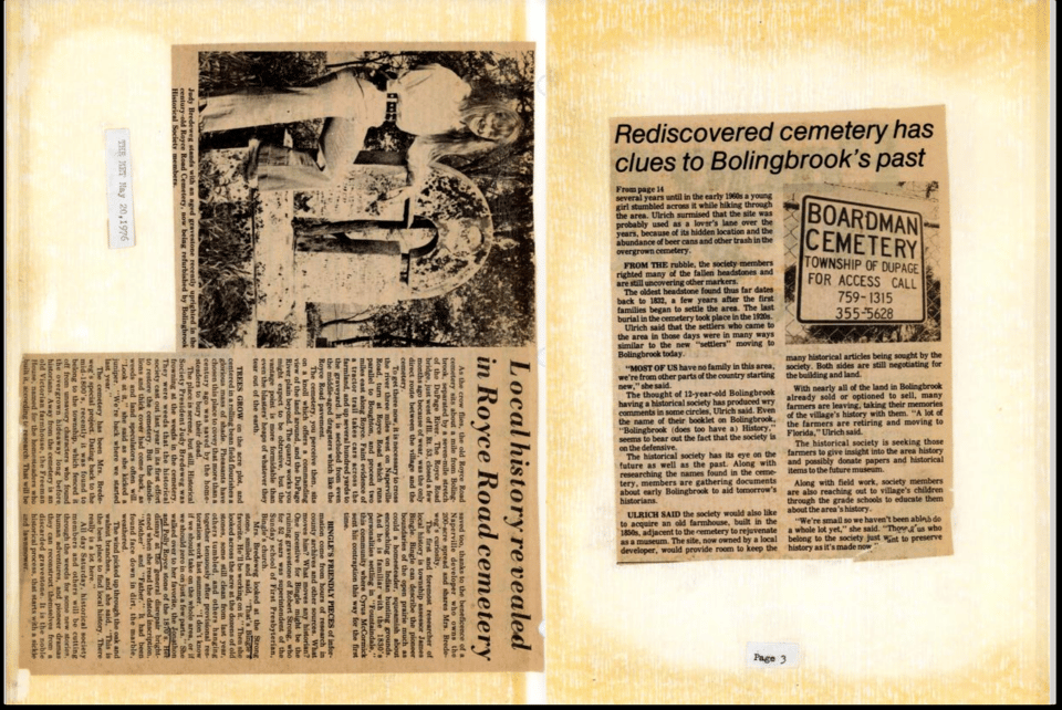 It’s almost like a breath of fresh air to see things be preserved for posterity. The Fountaindale Library scanned many of their genealogical and historical records into the Internet Archive, including this scrapbook of the Boardman Cemetery committee, where I spent hours poring over records and clips about the archiving and restoration work they did on the cemetery.