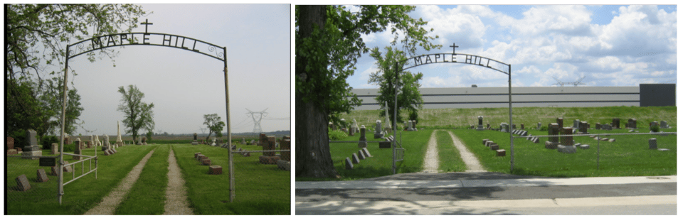 Maple Hill, which was in the boonies and is now neighbors with a Walmart warehouse. Almost all of the mayors of the nearby town are buried here.