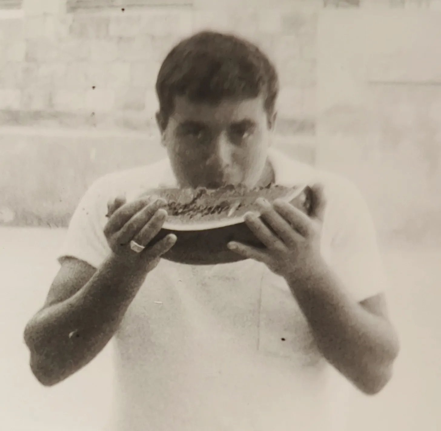 Our dad took us on vacation and he mowed the lawn at my grandparents lake cabin and he was photogenic, like my sister, and when all three of us girls took over the upstairs bathroom with our hairspray and makeup and tampons, he retreated to the downstairs spare bathroom every morning to shower. Dad answered the phone “Mesrobian speaking” and he peeled plates of grapefruit for us after dinner and he rode his bike to work sometimes and he watched boxing on a tiny black and white television in the kitchen on weekends, while my mom got the luxurious color TV all to herself. He sometimes called people and spoke Armenian; we sometimes visited people who spoke that to him. He made hummos in the blender and lacumun at the end of every summer when the tomatoes came in and he got hassled in airports in the 80’s when he traveled internationally, since he was born in Syria and customs agents never knew what to make of that.