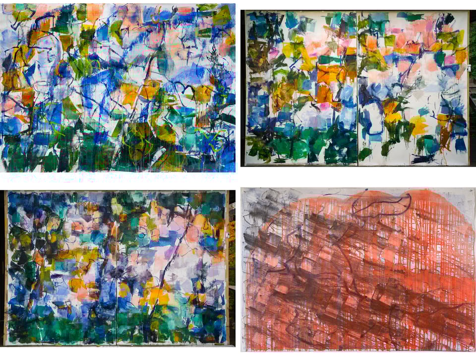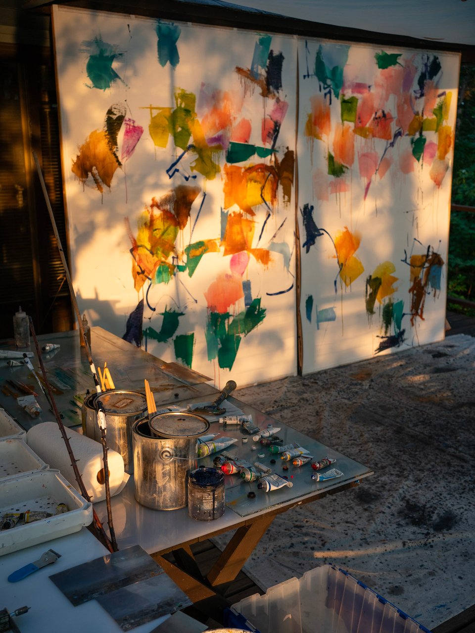 Among the paintings on linen, it’s easy to see the dependence on nature in the ostensibly landscape-based works. In those canvases, primarily the large 3-meter diptychs done in Minnesota last June and October (and those are not necessarily finished yet), I was trying to immerse myself in nothing but painting for a month at a time, to turn away from a culture that feels ever more manipulated, fabricated, and now even AI-generated.
